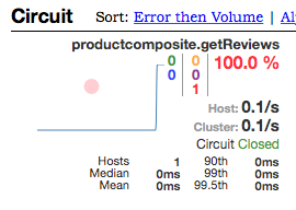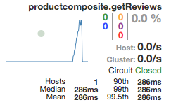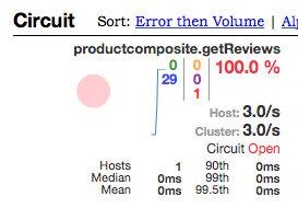 随后的请求将快速失败,也就是说,电路断路器将直接转发请求到回退方法,不再调用review服务。此时,log日志中将不再有GetReviews相关日志。