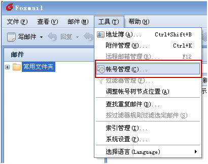 1、菜单栏中选择"工具—帐号管理"进行帐号添加;