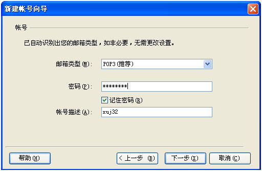 3、邮箱类型选择POP3和IMAP,填写邮箱密码后点击"下一步";