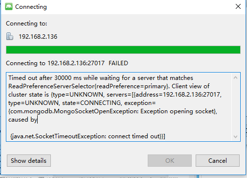 本地连接mongo报错,错误代码为: