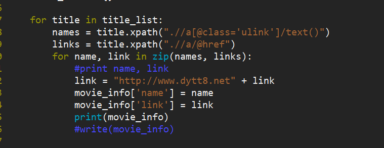 eg:从电影名称列表和链接列表中提取相对应的元素进行组合存放至movie_info字典中