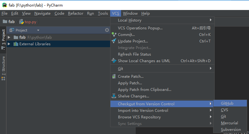 1.前面说的是上传,那么下载呢?在VCS菜单中:-->Checkout from Version Control -->GitHub