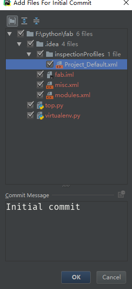 3.择你要上传的文件,一般是直接全部上传,当然也可以取消那些没必要的文件。输入提交信息,点击OK