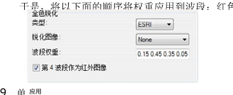 在波段权重文本框中输入下面以空格分隔的字符串:0.15 0.45 0.35 0.05。