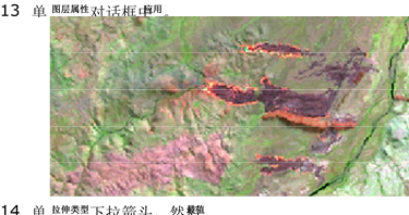 单击确定关闭对话框并应用拉伸。在这个影像中,应该能够检测到火灾烟迹,看到一些较为剧烈的火焰以及已经烧焦的区域。