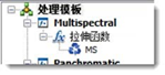 链的底端至顶端的函数都会应用于影像。您可看到,"多光谱"模板将创建一个 MS(多光谱)影像,然后仅将"拉伸"函数应用到影像,提升其外观。