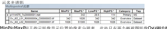 通过查看"类别"字段进行标识。在以全图范围查看影像时,会显示底层概视图影像,将其放大时(需要更大的像素大小)会看到表中上一层的影像。接下来会看到使用 MS 标记识别的源影像。