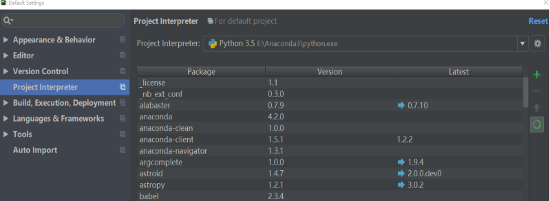 首先点击左上角的File,再点击Default Settings,点击右侧Project Interpreter框框的下箭头,然后点击Show All
