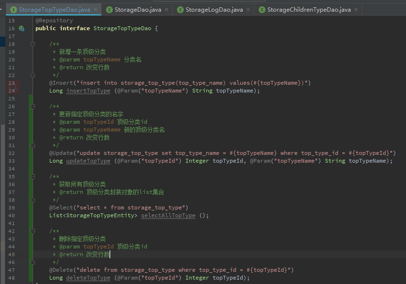 四、在dao层设置基础增删改查方法,添加@Repository和@Mapper注解