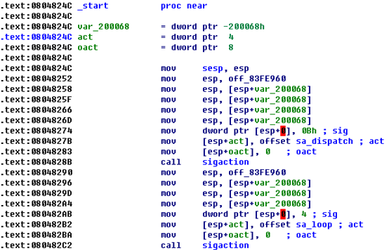 并且在题目的开头注册了两个信号的处理,分别是对SIGSEGV和SIGILL的处理。