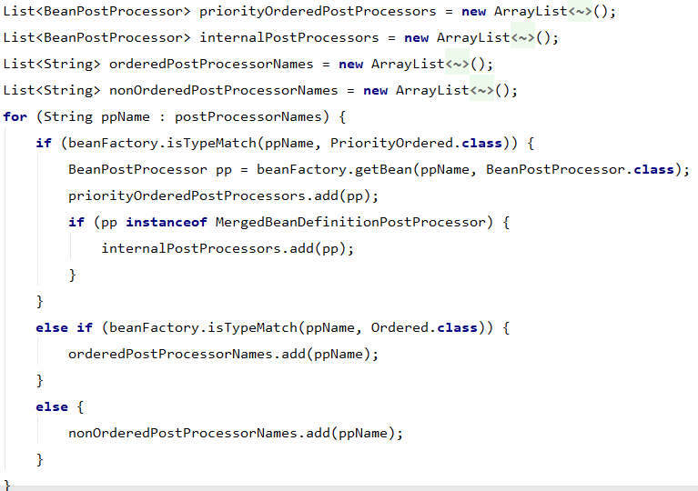b)按照PriorityOrdered>Ordered>NonOrder顺序对BeanPostProcessor进行分类