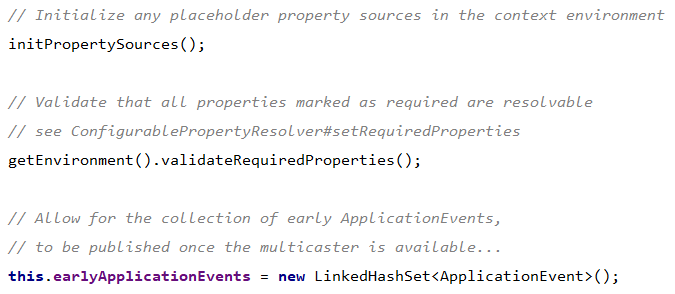 1.prepareRefresh方法,主要作用:初始化各标记值,初始化Environment,从配置的propertySources读取配置