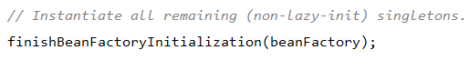 finishBeanFactoryInitialization(beanFactory);//初始化非lazy-init单例对象