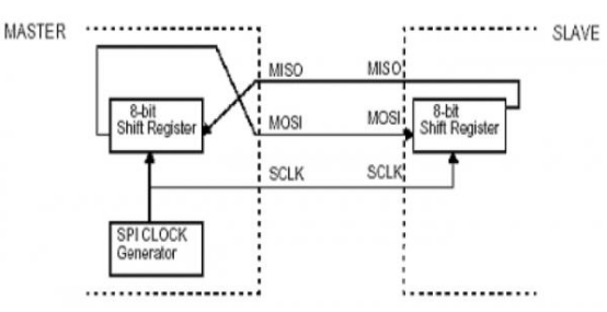 从图中可以看到,SPI通讯主要由一个时钟生成器(SPI CLOK Generaor)和一个8位的移位寄存器(Shift Register)组成。