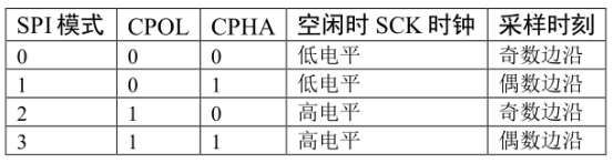 时钟极性CPOL和时钟相位CPHA的不同状态组合,可以产生4种SPI通讯模式,如下: