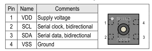 从图中可以看到,SHTC3只有4个引脚,电源和地、2个I2C通讯引脚。