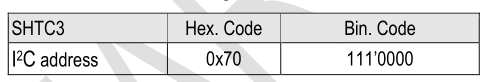 在SHTC3的规格资料内,SHTC3的I2C设备地址为0x70,如下: