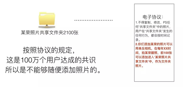 那到底是个啥共识呢?啊,小 One 和小露立刻了解了某本聪的意思,在每年规定的时间内,尽快拍出 100 张某荣的照片,这样就可以添加到“某荣共享文件夹”了,我们的资源就扩充了。