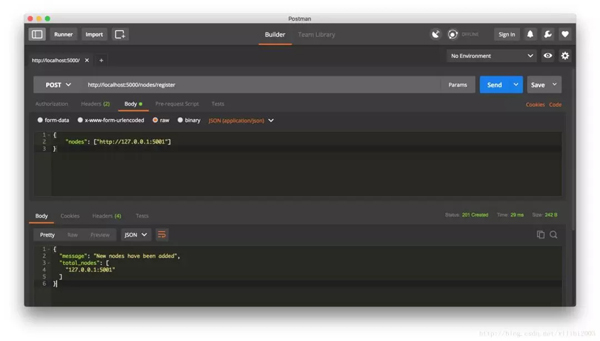 让我们添加两个路由,一个用来注册节点,一个用来解决冲突。