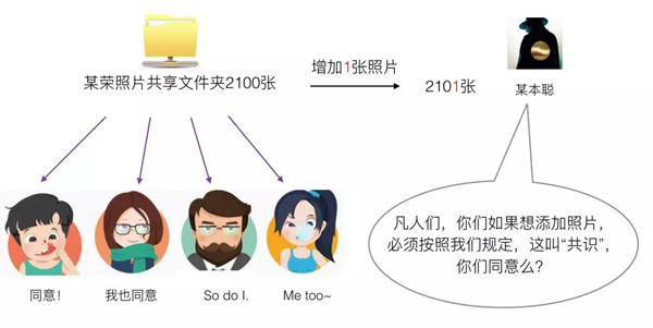 如何增加区块链保护的资源?“某本聪”又来了。他说,你们是可以在文件中添加某荣照片的,但是呢,你们各位必须达到某种“共识”?啥是“共识”,就是我们都承认的规则喽。