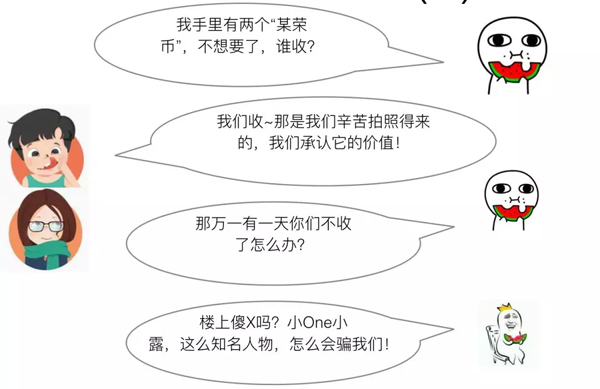 根据这个图的含义,如果小 One 和小露是一个可信任的机构或者公众人物,还是可以相信他们的,当然啦也会有很多不法分子恶意发行货币来套现的。