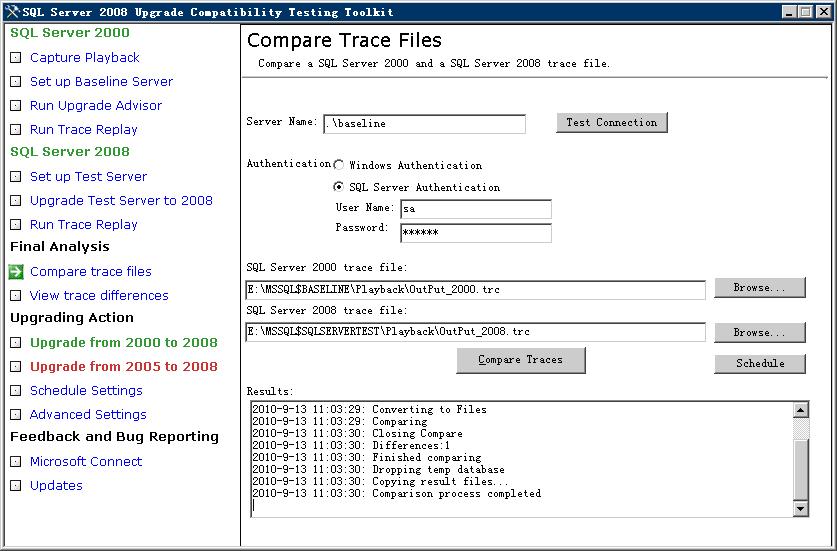 - 同样对新的SQL Server 2000/2005实例回放先前录制的跟踪,也录制SQL Server 2008的输出结果。