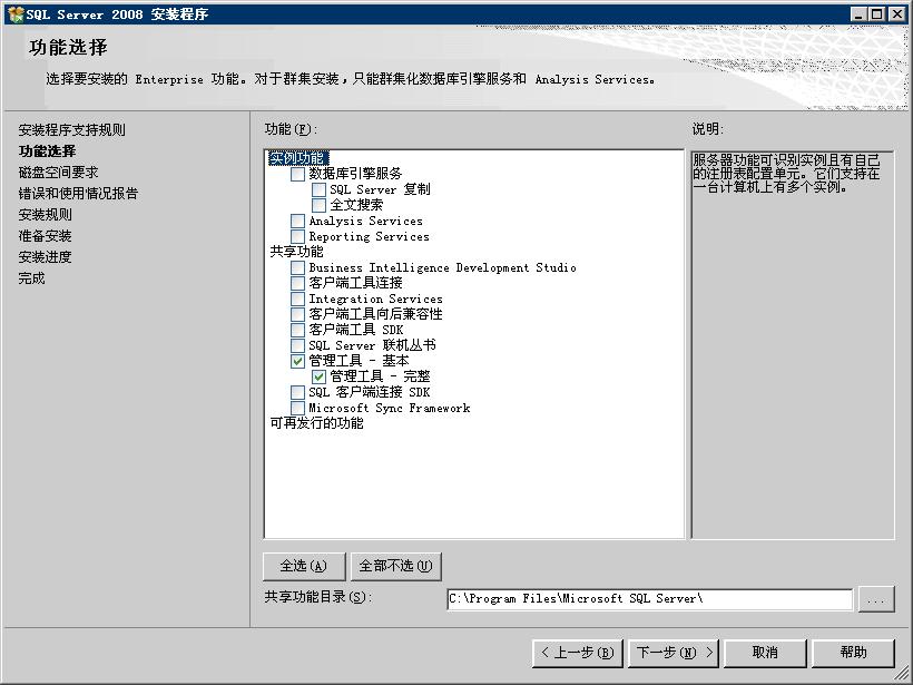 图3.1 安装SQL Server 2008的前台管理工具