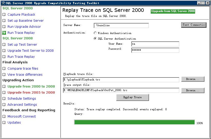 步骤四:针对基准SQL Server 2000实例进行回放测试