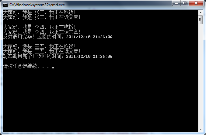 Console.WriteLine("动态调用完毕!返回的时间:" + invokeReturnTime);