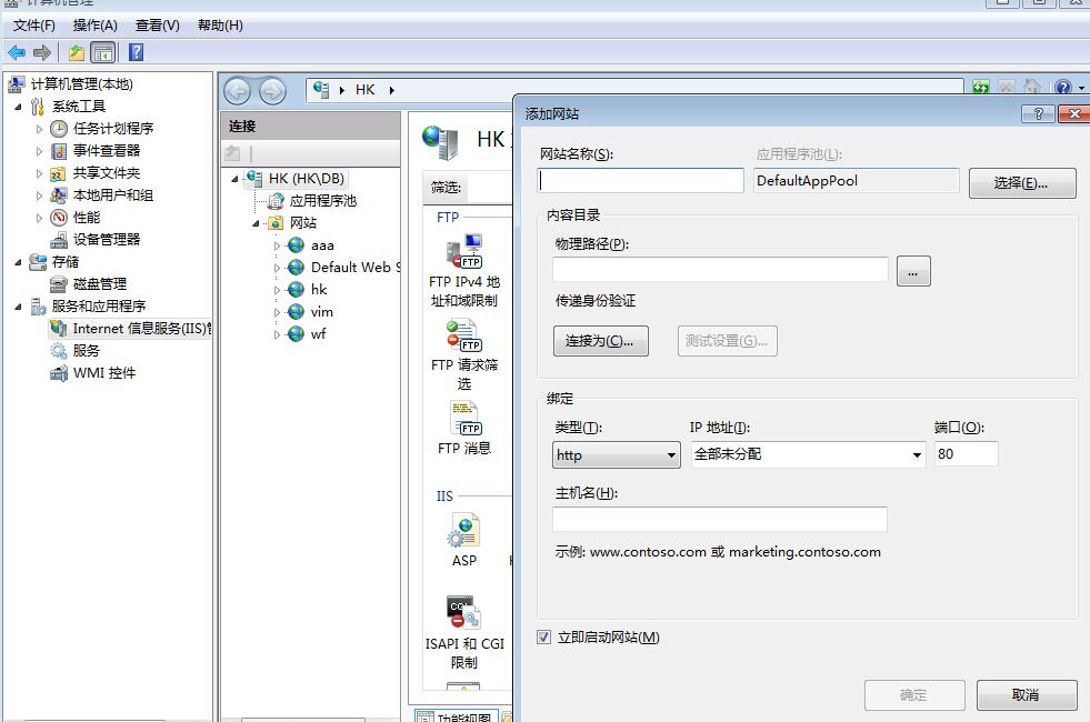 2配置电脑的iis(前提是你已经安装了)