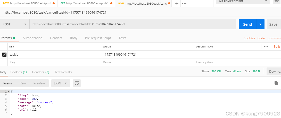 打开PostMan进行取消任务测试:
