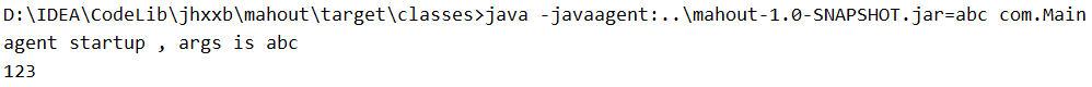 java -javaagent:..\mahout-1.0-SNAPSHOT.jar=abc com.Main