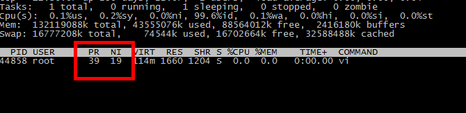 top时进程信息字段的ni值即为修正值;最低为19,所以下图的20最终为19