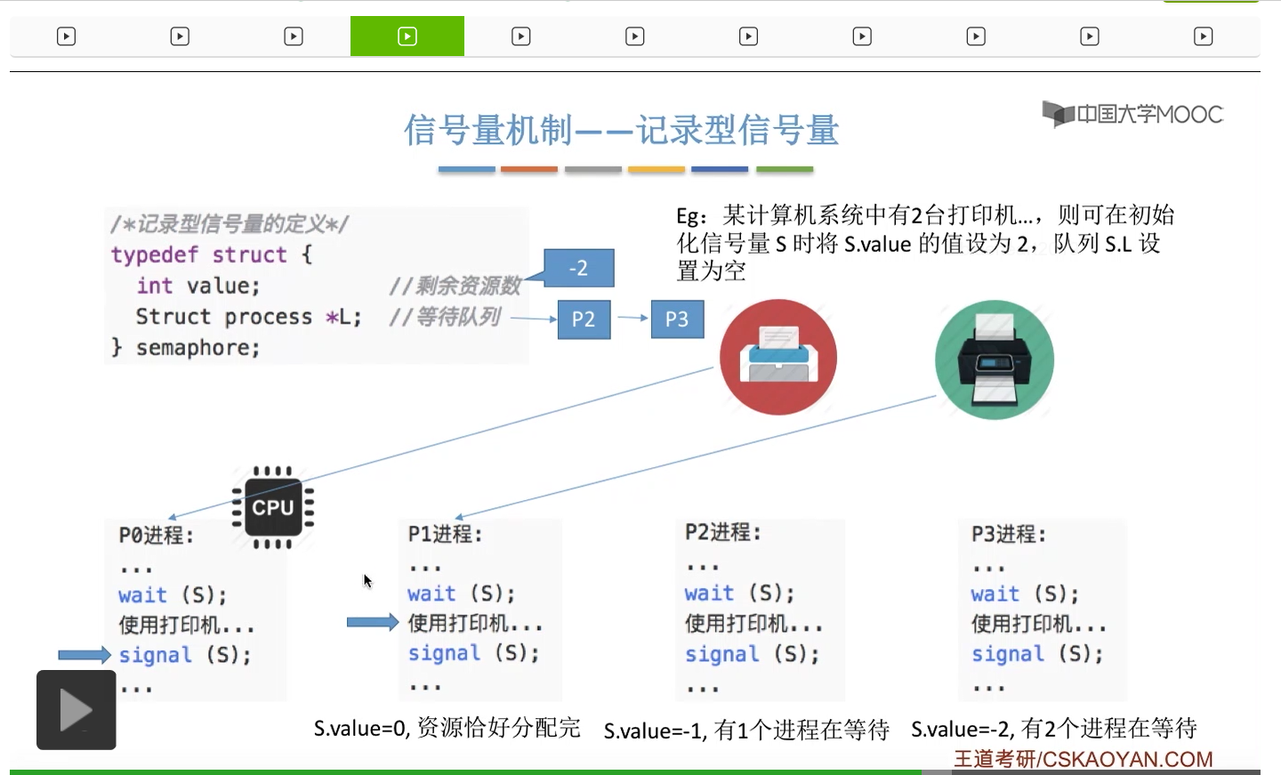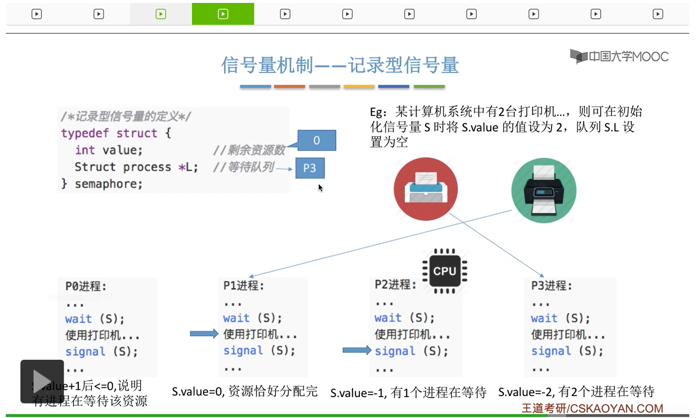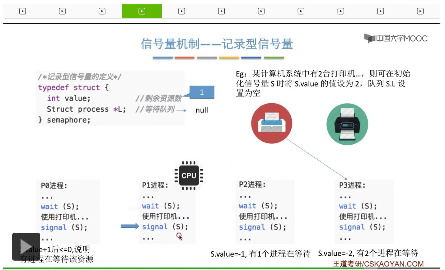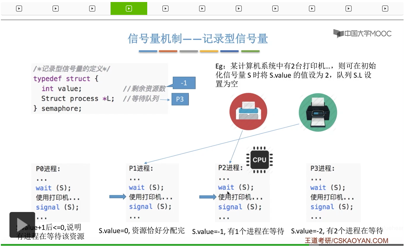 进程互斥的几种软件实现方式和硬件实现方式,但是这些实现方式都有一个共同的缺点就是,没有办法实现让权等待这个原则。而信号量机制当中,设置了进程的阻塞和唤醒,就刚好可以解决让权等待这个问题,所以信号量机制是一种更先进的解决方式。那我们上个小节介绍了信号量是什么?信号量机制的PV操作分别做了一些什么事情?不要先一头钻进代码里,而是要注意理解信号量背后的含义。