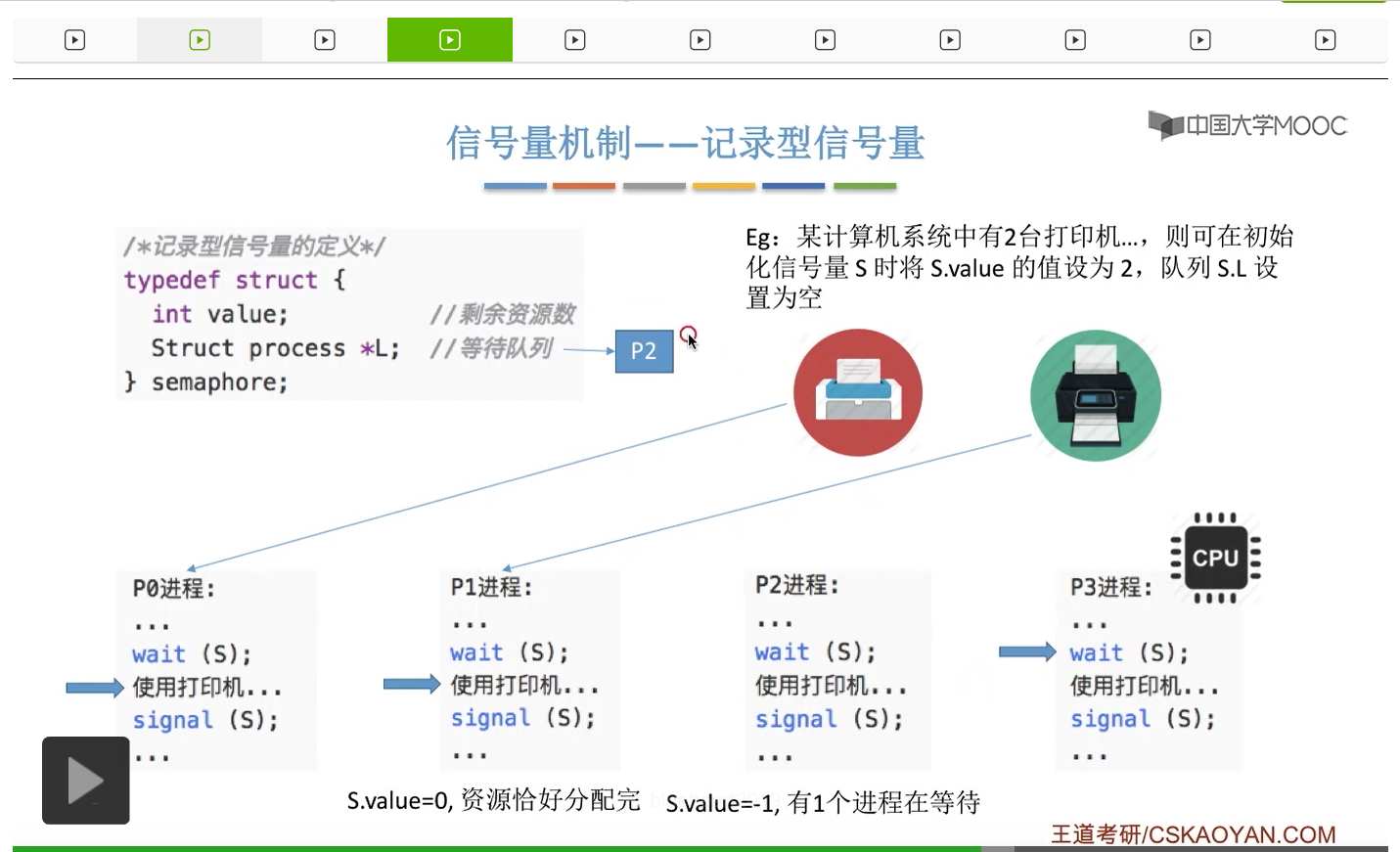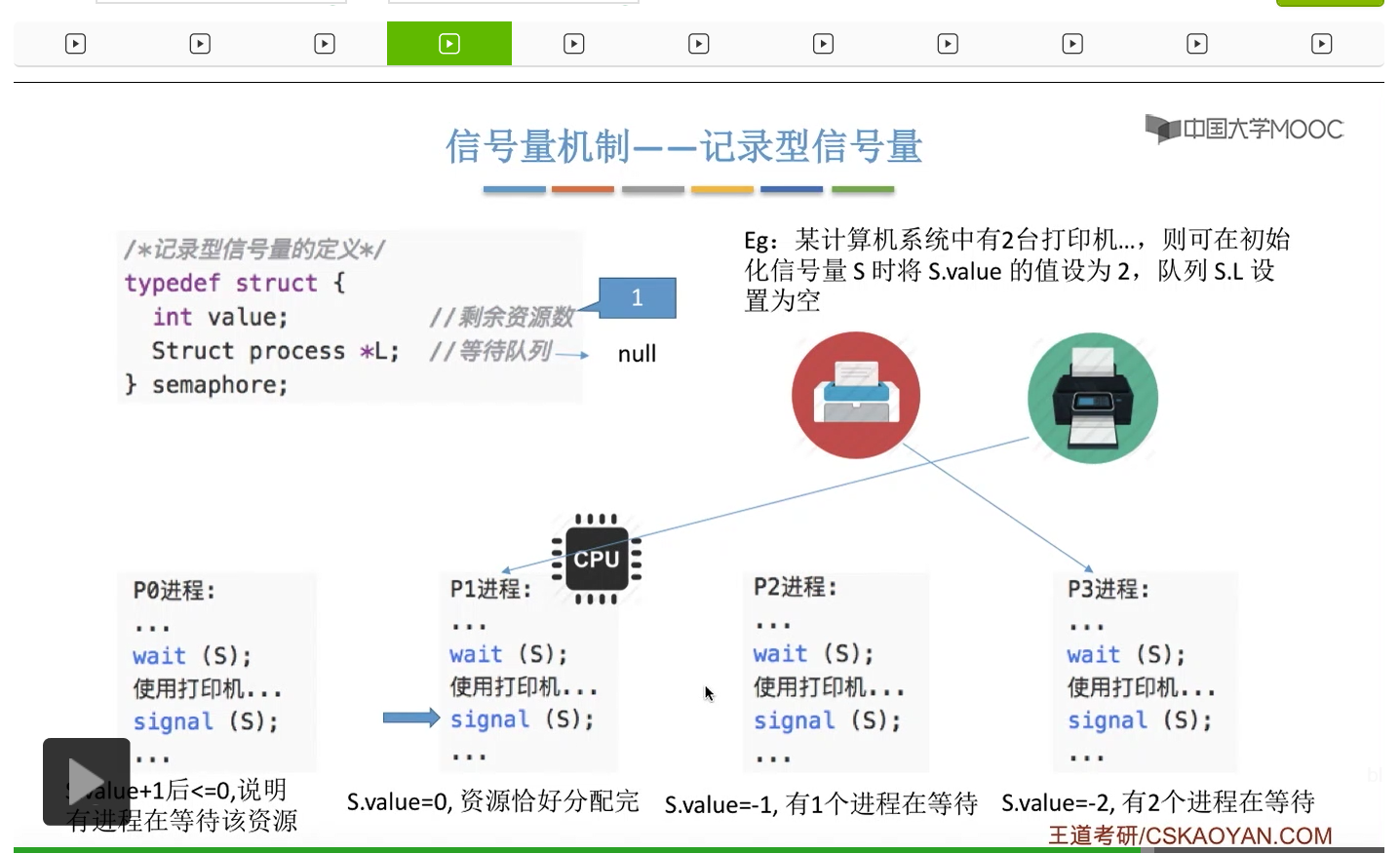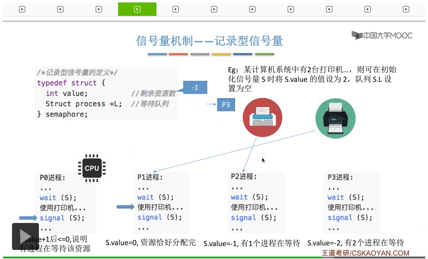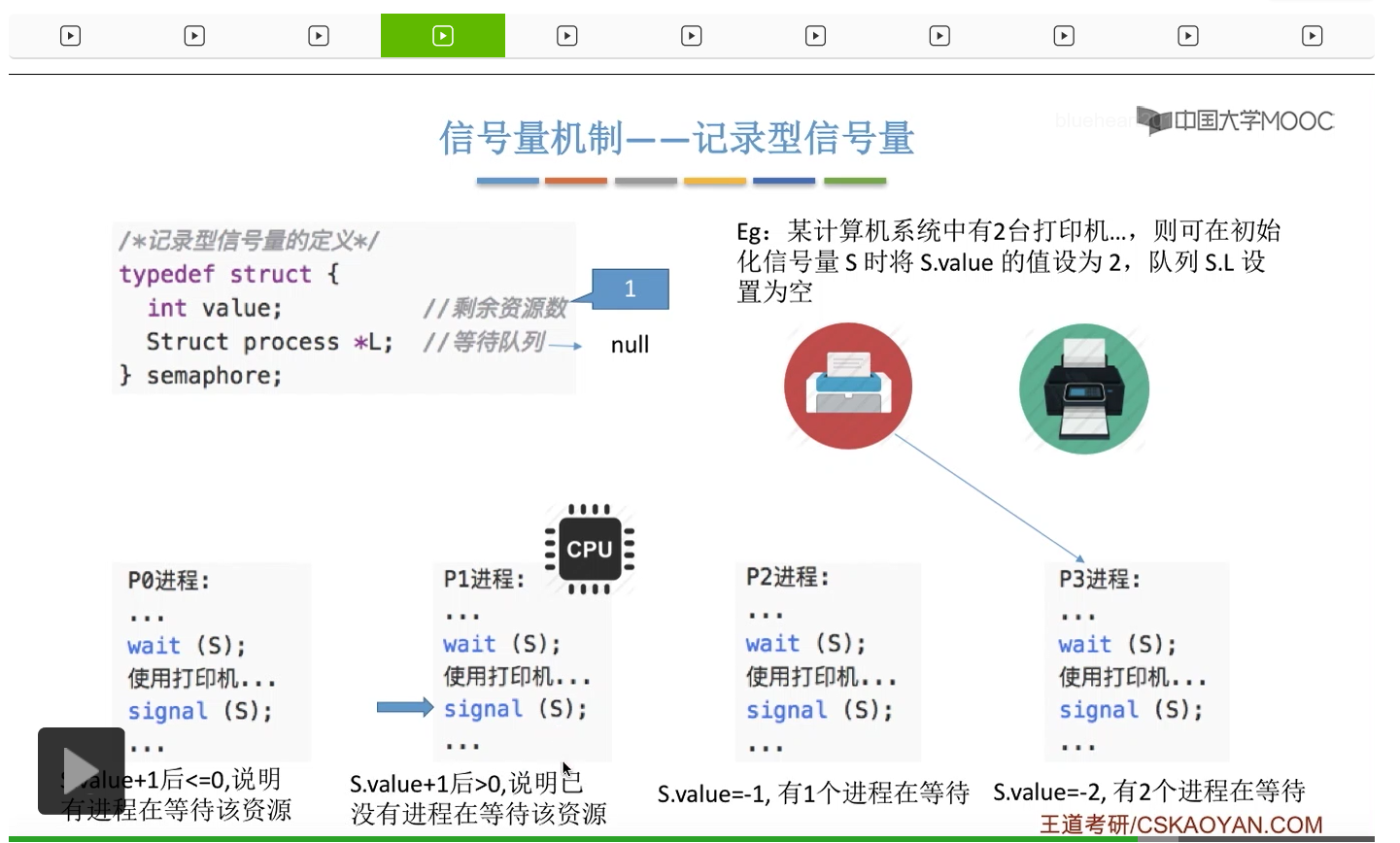 进程互斥的几种软件实现方式和硬件实现方式,但是这些实现方式都有一个共同的缺点就是,没有办法实现让权等待这个原则。而信号量机制当中,设置了进程的阻塞和唤醒,就刚好可以解决让权等待这个问题,所以信号量机制是一种更先进的解决方式。那我们上个小节介绍了信号量是什么?信号量机制的PV操作分别做了一些什么事情?不要先一头钻进代码里,而是要注意理解信号量背后的含义。