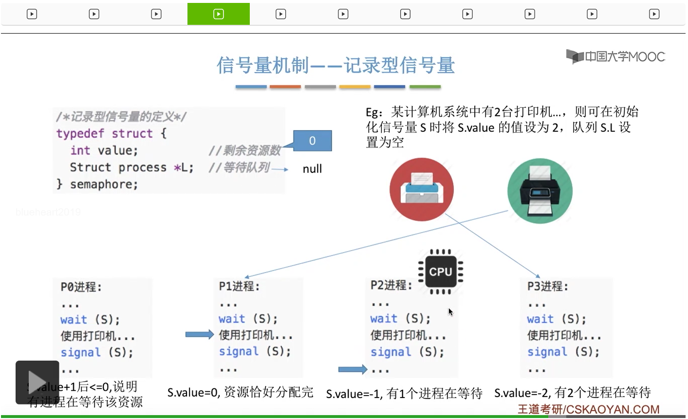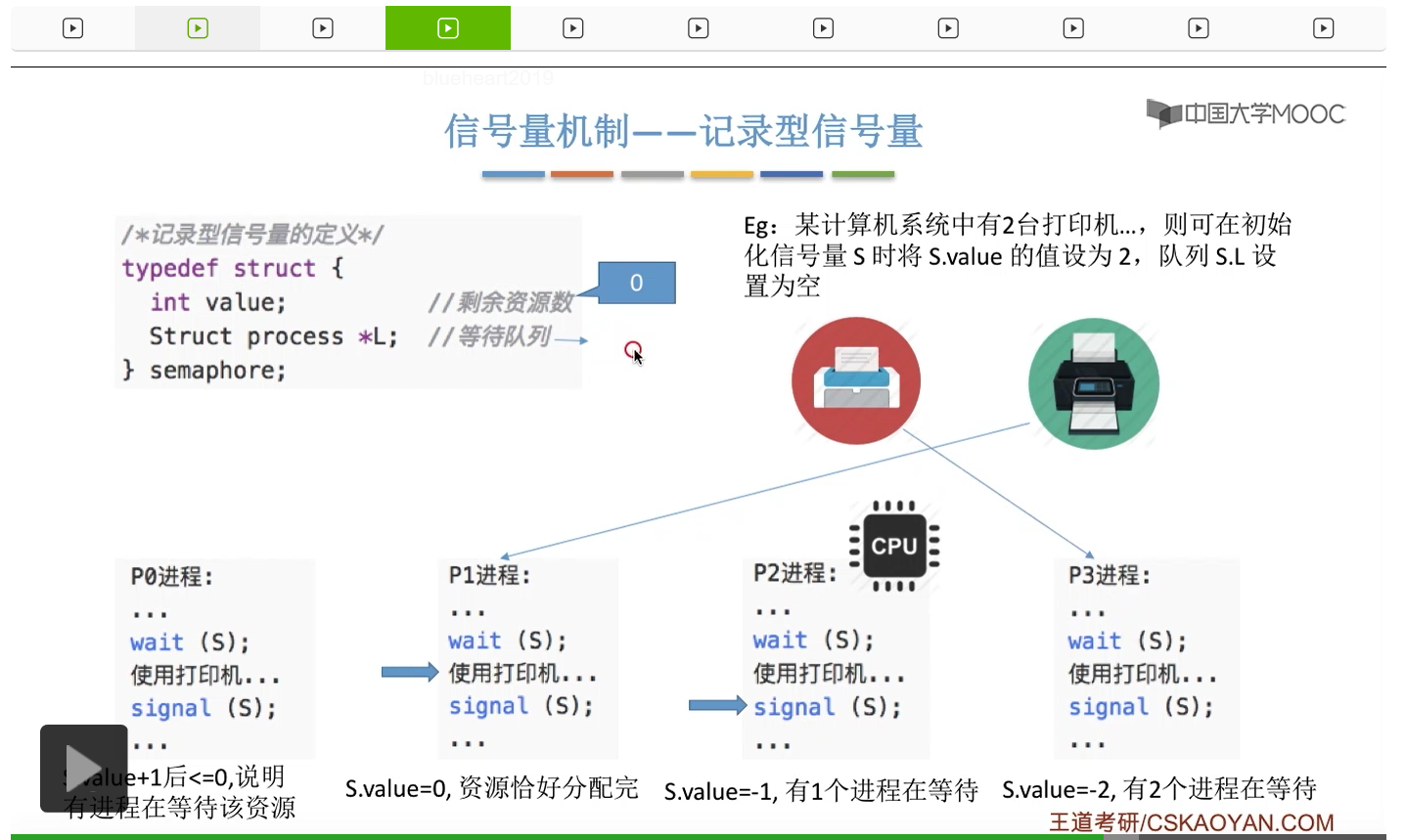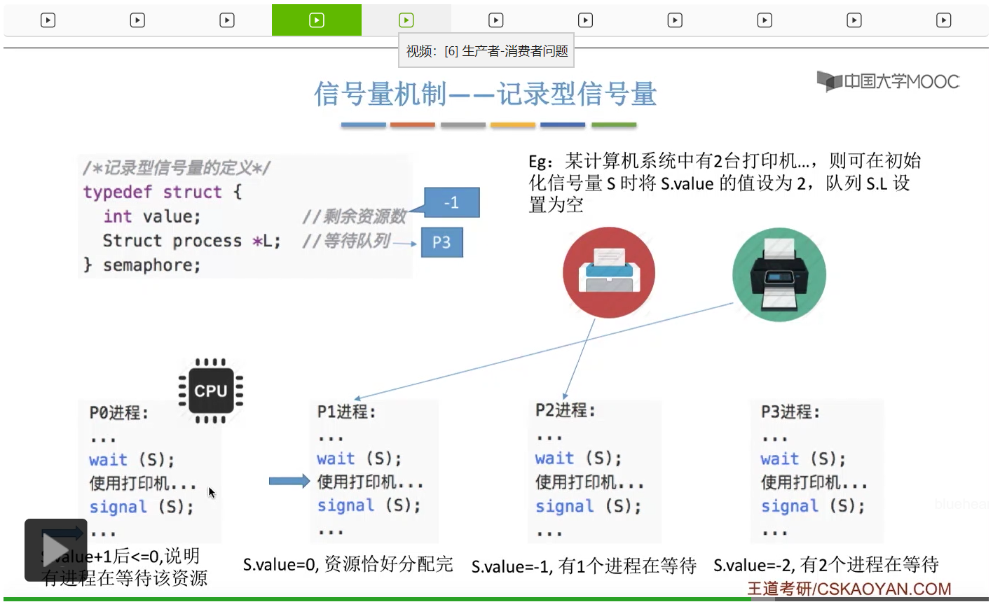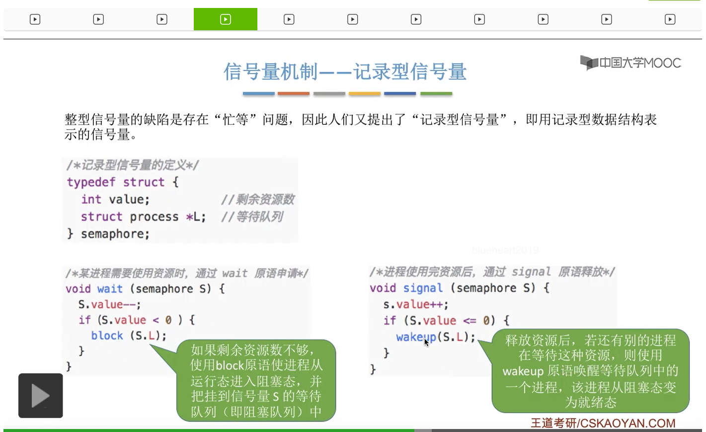 只要我们用semaphore这个关键字来开头的话,那么就意味着这个信号量它并不是整型信号量,它是一个记录型的信号量,也就是说这个信号量是带有排队阻塞的这个功能的,并不会忙等。