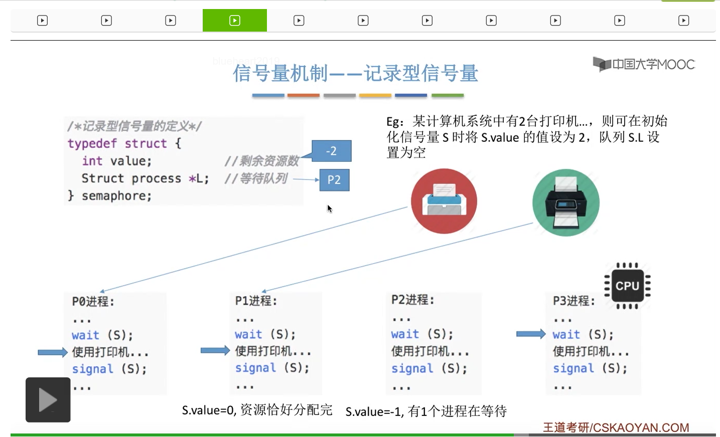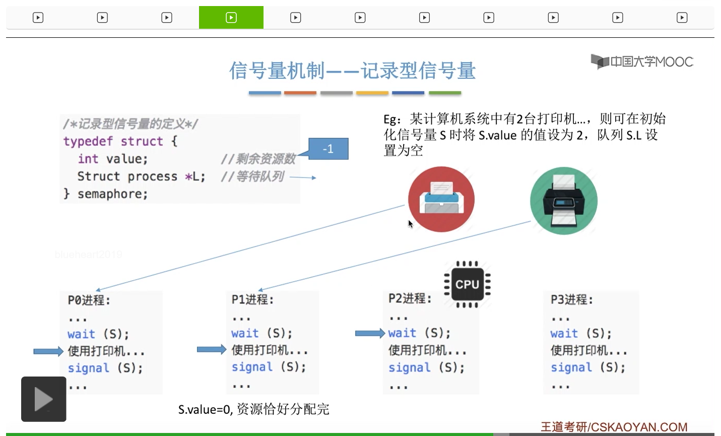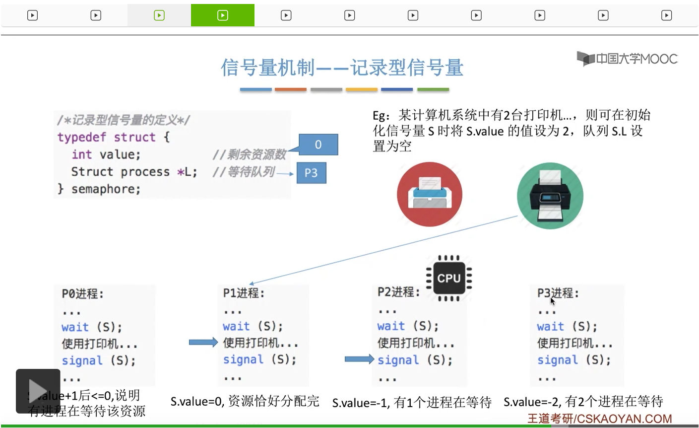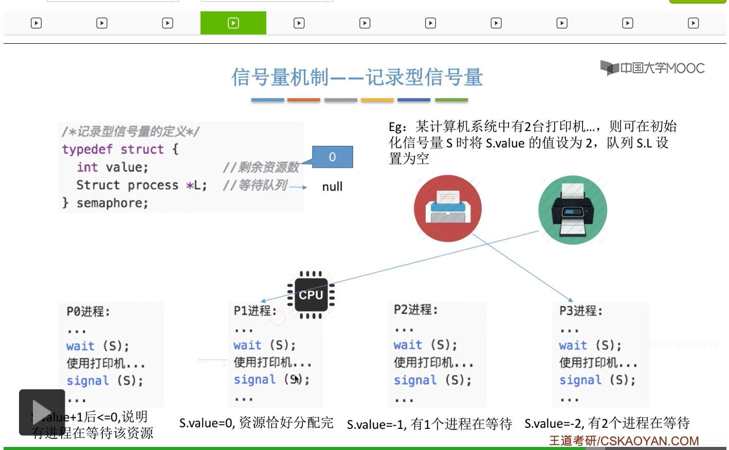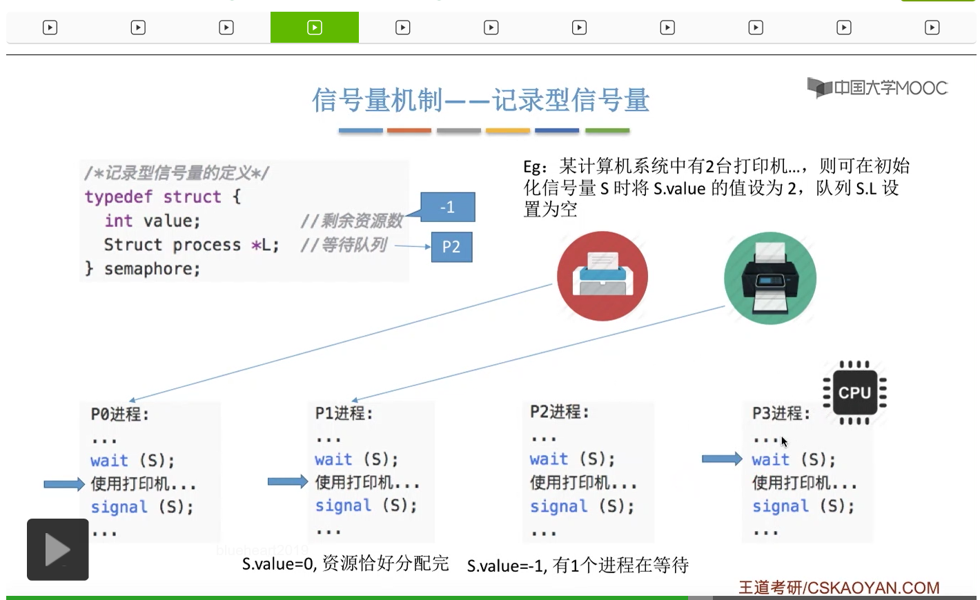 只要我们用semaphore这个关键字来开头的话,那么就意味着这个信号量它并不是整型信号量,它是一个记录型的信号量,也就是说这个信号量是带有排队阻塞的这个功能的,并不会忙等。