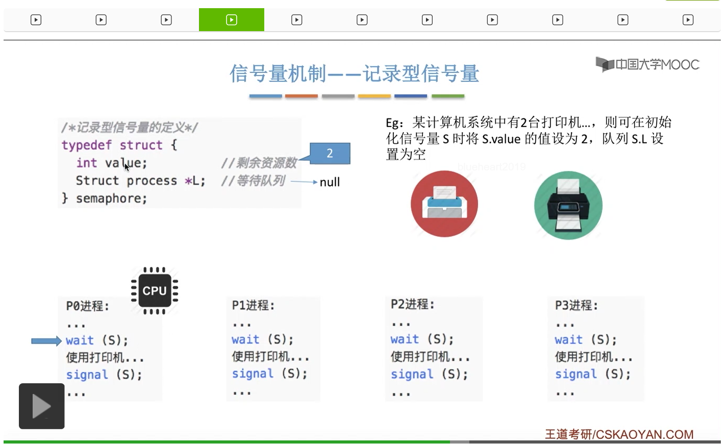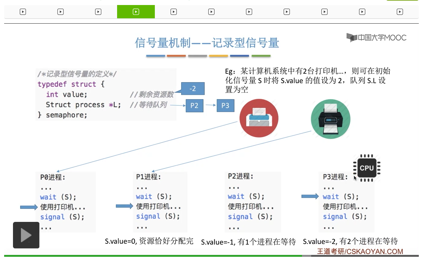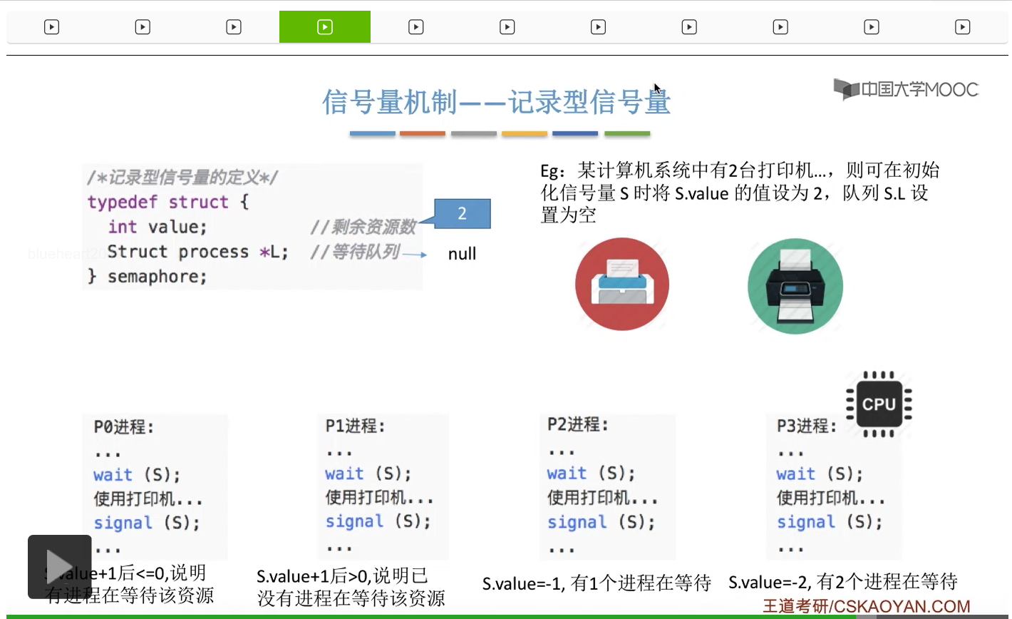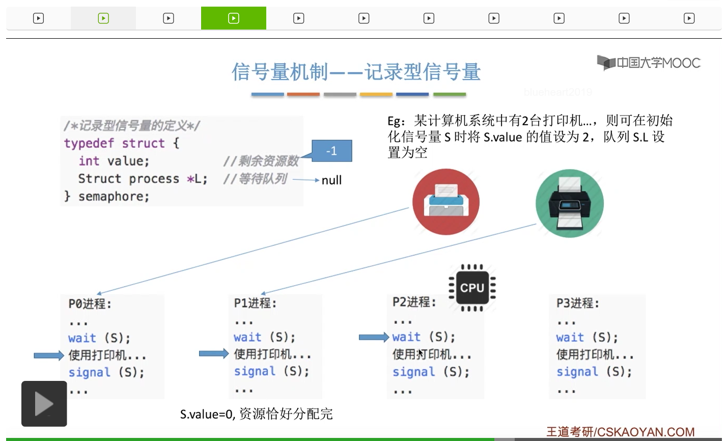 只要我们用semaphore这个关键字来开头的话,那么就意味着这个信号量它并不是整型信号量,它是一个记录型的信号量,也就是说这个信号量是带有排队阻塞的这个功能的,并不会忙等。