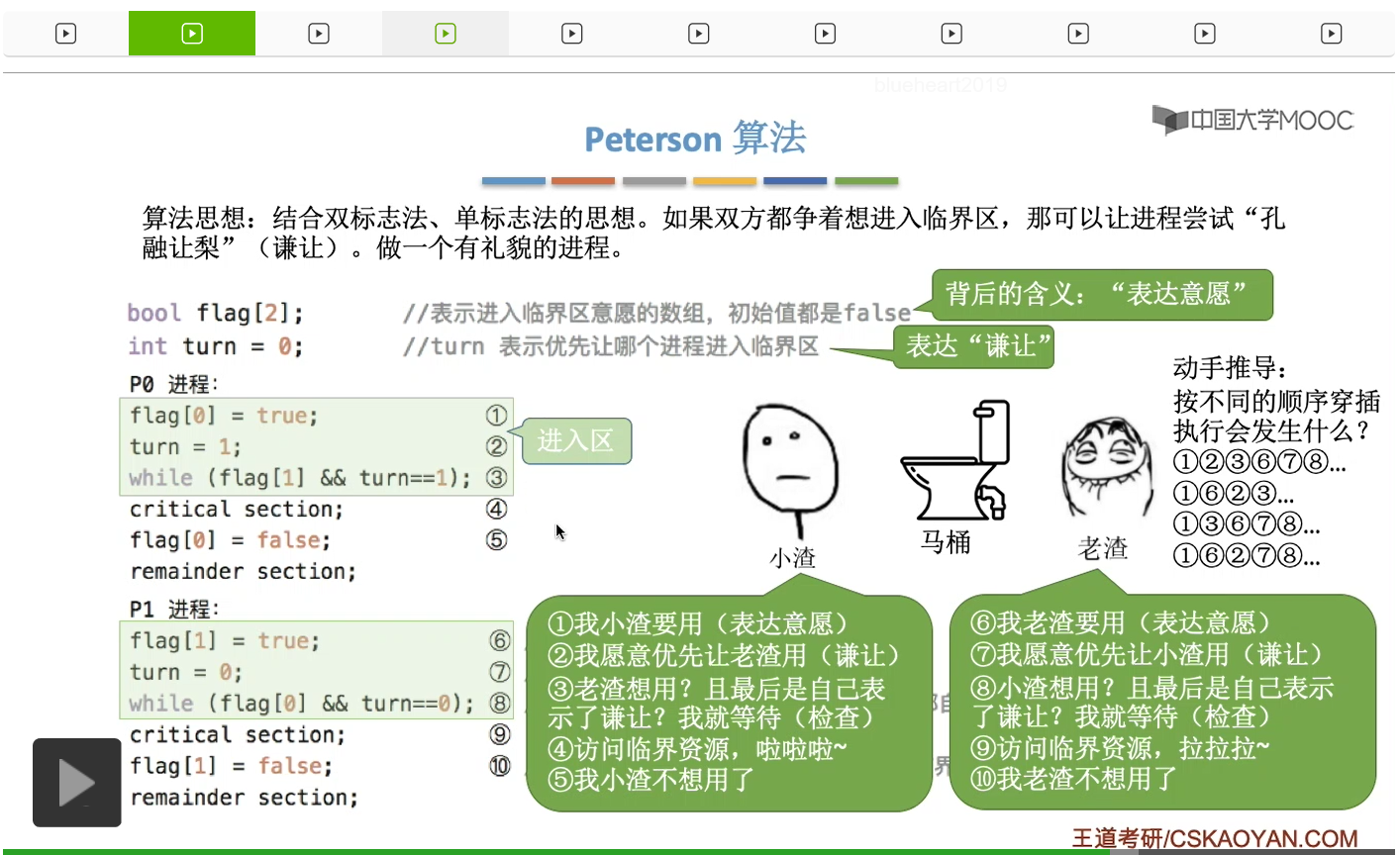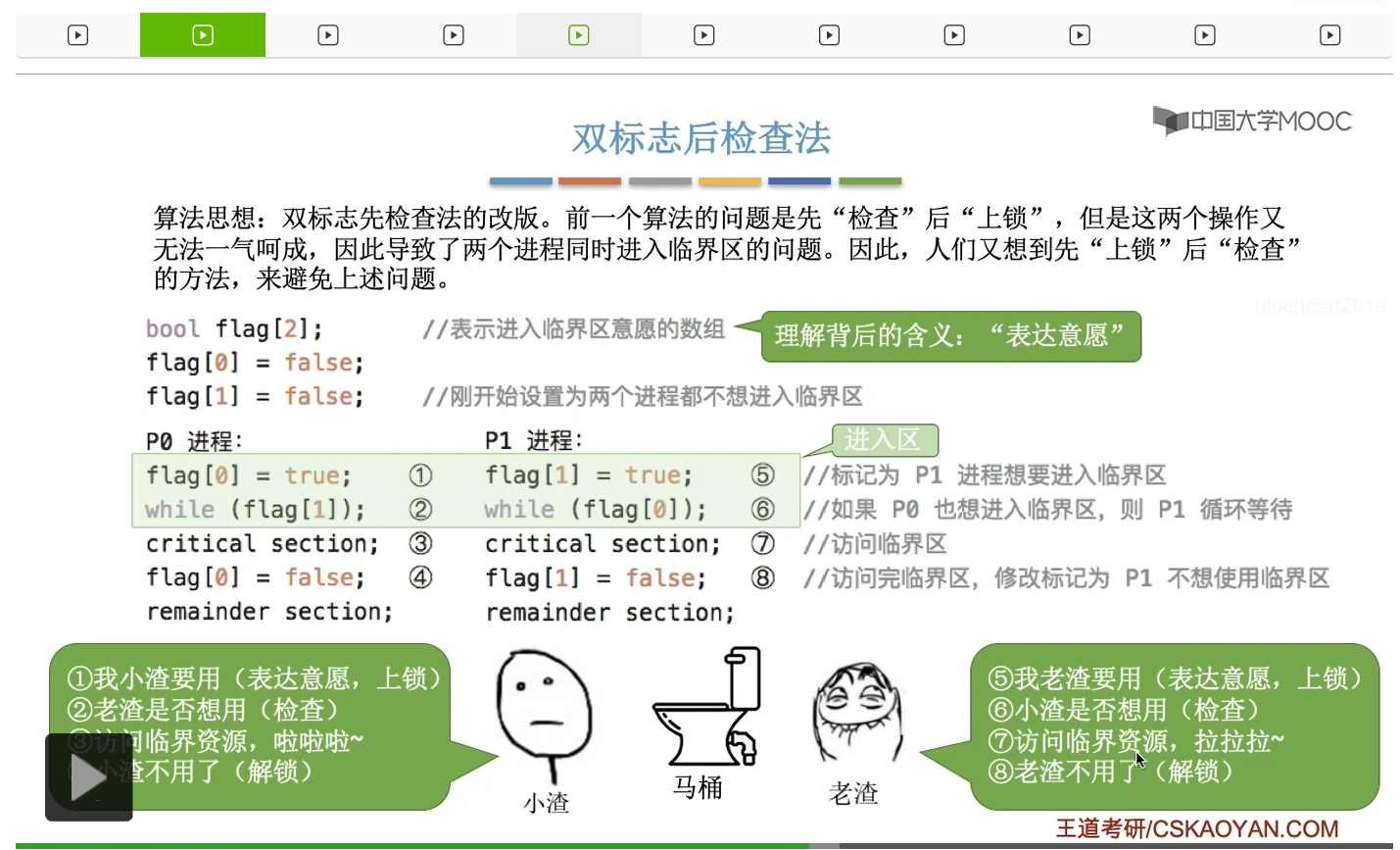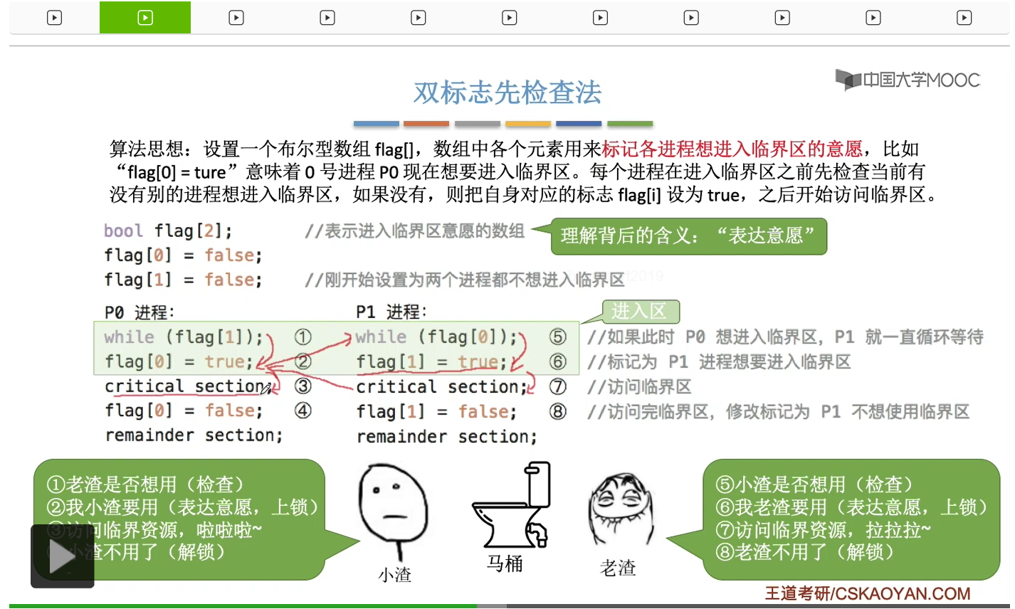 如果按①->⑤->②->⑥这样的方式来执行的话,小渣和老渣就同时开始使用马桶了,这是很奇怪的事情。