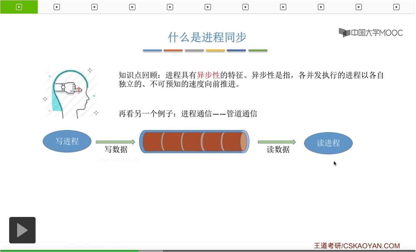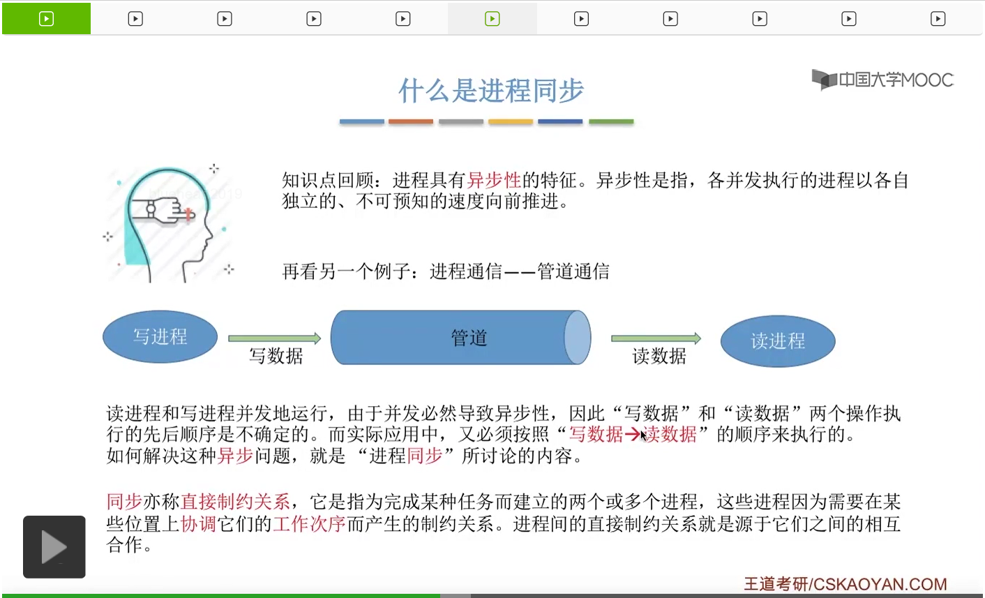那进程的同步这个概念我们已经有一段时间没提了,再来简单地复习一下。我们要解决它们之间并发运行存在的异步性,让它们按照我们想要的顺序相互配合着有序地推进。