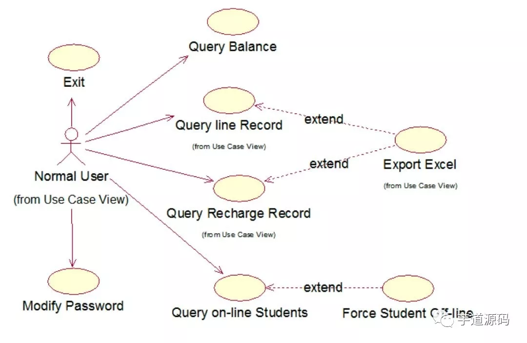 场景视图用于描述系统的参与者与功能用例间的关系,反映系统的最终需求和交互设计,通常由用例图表示。