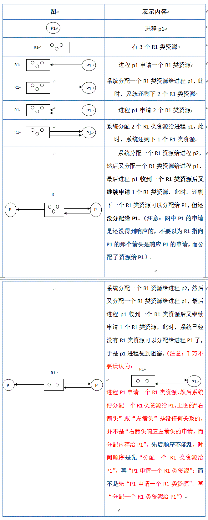 R1有两个资源,一个分配给了P1,,一个分配给了P3,此时P2申请R1的资源,因为R1此时没有可用资源,P2堵塞。