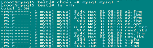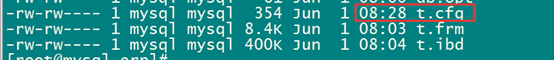 将t.cfg,t.ibd文件复制到erp库指定路径并修改权限。