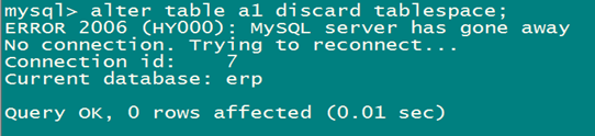 如果此处(向高版本传送表空间)row_format不一样,建表不设置row_format;报错如下: