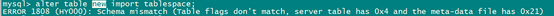ERROR 1808 (HY000): Schema mismatch (Table flags don't match, server table has 0x4 and the meta-data file has 0x21)