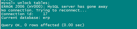 传送端test数据库执行解锁操作(因为目前处于只读操作,需要解锁操作)