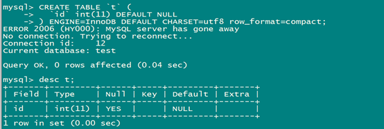 ) ENGINE=InnoDB DEFAULT CHARSET=utf8 row_format=compact;