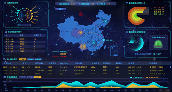 迪普的的态势感知是B/S架构,浏览器登录之后F11全屏即是下面的效果: