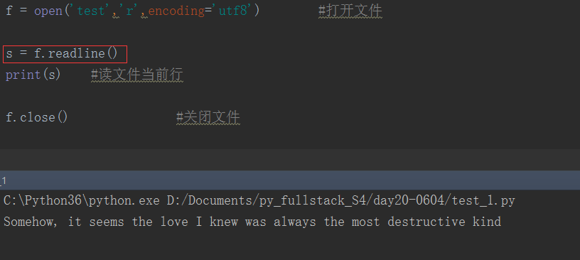 f.readline() 会从文件中读取单独的一行。换行符为 '\n'。f.readline() 如果返回一个空字符串, 说明已经已经读取到最后一行。