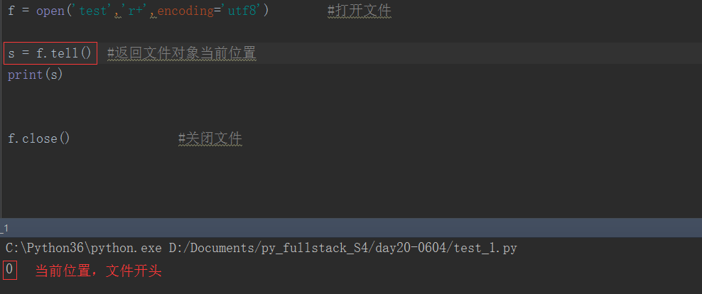 f.tell() 返回文件对象当前所处的位置, 它是从文件开头开始算起的字节数。